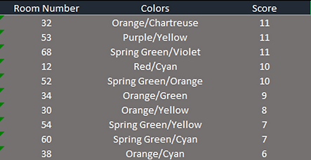 The image below displays the tension-creation capabilities of each color. A lower score in the column indicates that the color can more easily create tension, even in brighter lighting conditions.